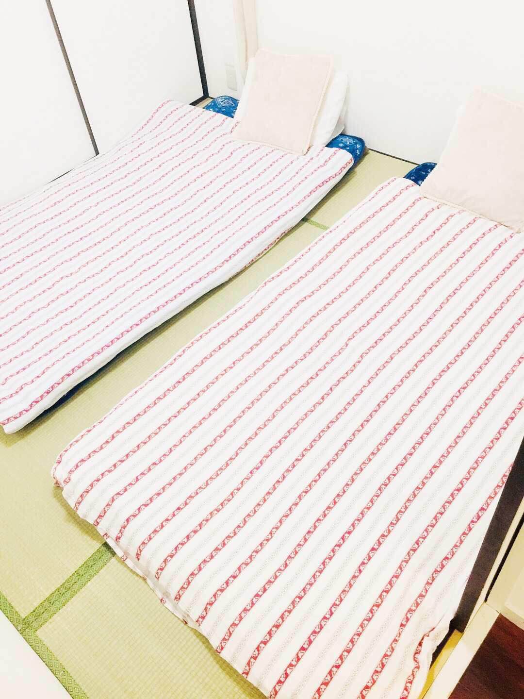 清潔和室部屋で日本の生活を味わえます。良い生地の寝具を用意させていただきますので、気持ちよくお休みなさい。
